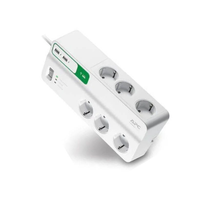 APC PM6U-GR to model, który dobrze pasuje do klasycznego biurka albo mniejszego stanowiska domowego. Producent deklaruje 6 zabezpieczonych gniazd, rating 1836 J oraz 2 porty USB 5 V / 2,4 A. To dobry środek między prostą listwą bez dodatków a bardziej rozbudowanymi modelami z większą liczbą gniazd. W praktyce 6 gniazd wystarczy wielu osobom do komputera, monitora, routera, lampki i kilku drobnych akcesoriów, a USB pomaga ograniczyć liczbę osobnych ładowarek. To jeden z tych modeli, które nie próbują być „najbardziej premium”, tylko po prostu rozwiązują typowy problem użytkownika domowego.