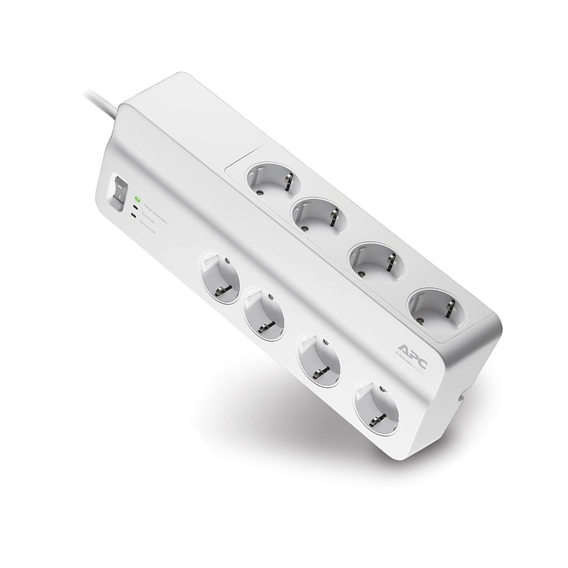 APC PM8-GR to bardzo mocna propozycja dla użytkownika, który chce po prostu kupić solidną listwę i mieć spokój. Producent deklaruje 8 zabezpieczonych gniazd, rating 2690 J oraz filtrowanie EMI/RFI, więc na papierze jest to model dobrze dopasowany do komputera, monitora, routera, głośników, ładowarek i innych urządzeń pracujących w jednym miejscu. To nie jest listwa nastawiona na efektowne dodatki, ale właśnie dlatego dobrze się broni: daje dużo gniazd, wyraźnie opisaną ochronę i sensowny poziom funkcjonalności bez przepłacania za porty, których część użytkowników i tak nie wykorzysta.